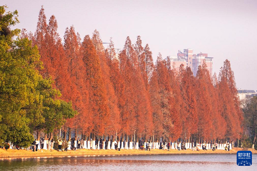 12月18日,市民在長沙市烈士公園游玩。(新華社記者 陳思汗 攝) 連日來,湖南省長沙市烈士公園的水杉樹葉轉(zhuǎn)紅,在冬日暖陽的映照下,園內(nèi)景色如畫,吸引不少市民前來游玩打卡。 (責任編輯:蔡文斌) |