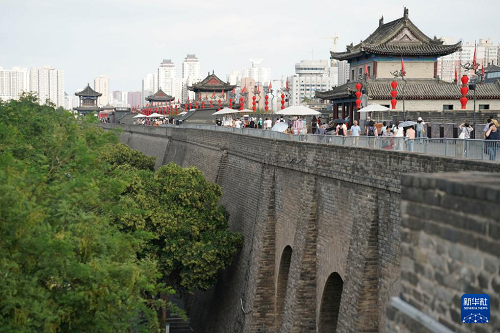 西安城墻南段東側(cè)景色(2025年9月12日攝)。(新華社記者 邵瑞 攝)