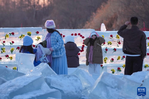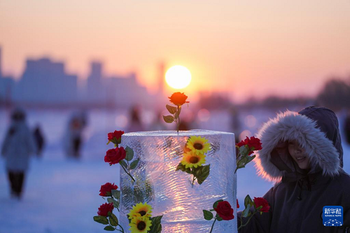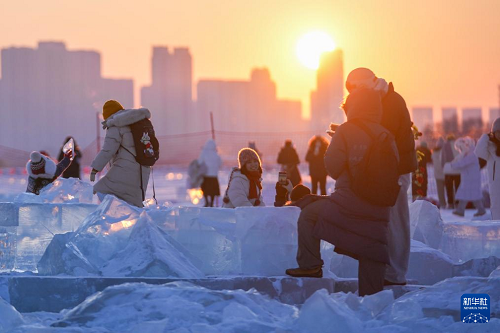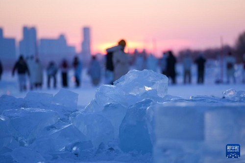 時(shí)下,“冰城”哈爾濱市正值冰雪旅游旺季。松花江哈爾濱段一處采冰場(chǎng),由于大量堆積高純凈度的冰塊,而被游客稱為“鉆石?!?,成為網(wǎng)紅景區(qū)。只要是晴好天氣,都會(huì)有許多游客來(lái)到“鉆石?!本皡^(qū),欣賞浪漫的落日美景。