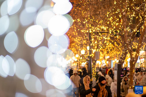 時下,“冰城”哈爾濱正值冰雪旅游季。夜幕降臨,百年老街中央大街被璀璨燈火點亮,游客置身其中,仿佛步入流動的冰雪藝術(shù)長廊,令人流連忘返。