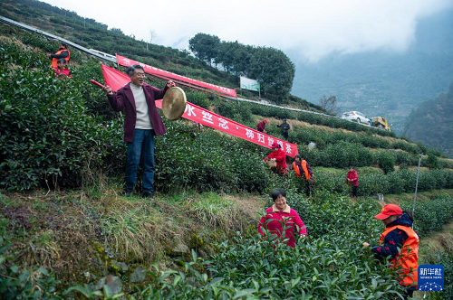 1月29日,三峽庫(kù)區(qū)湖北省宜昌市秭歸縣“絲綿茶1號(hào)”早茶基地開(kāi)園,當(dāng)?shù)夭柁r(nóng)搶采茶葉嫩芽,供應(yīng)春節(jié)市場(chǎng)。湖北秭歸是“中國(guó)絲綿茶之鄉(xiāng)”,近年來(lái),當(dāng)?shù)夭柁r(nóng)和華農(nóng)大科研人員立足本地優(yōu)勢(shì)茶樹(shù)品種,選育并推廣“絲綿茶1號(hào)”特早生茶樹(shù)新品種,助力鄉(xiāng)村產(chǎn)業(yè)振興。