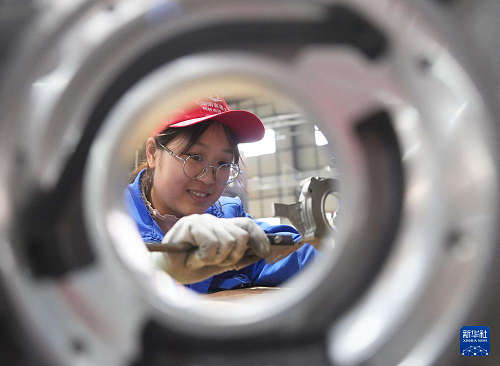 2月24日,在湖南省衡山縣衡山高新技術產(chǎn)業(yè)開發(fā)區(qū),湖南嘉力機械有限公司員工在生產(chǎn)線上工作。(新華社發(fā) 曹正平 攝)