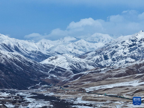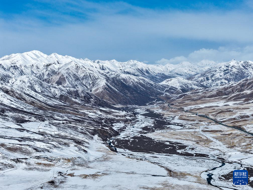 3月15日,青海省果洛藏族自治州瑪沁縣雪后迎來晴好天氣,群山被白雪覆蓋,與藍天相映,構(gòu)成一幅壯美的高原春日圖景(無人機照片)。(新華社記者 張龍 攝)