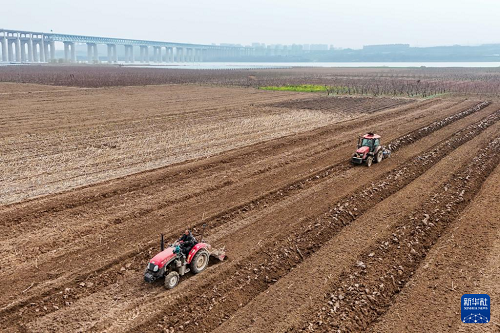 3月19日,山西省運(yùn)城市平陸縣張村鎮(zhèn)的農(nóng)民進(jìn)行翻地作業(yè)(無人機(jī)照片)。(新華社記者 曹陽 攝)