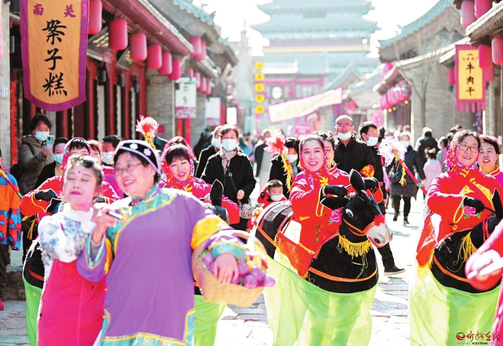 2月17日,忻州古城,民間文藝表演隊正在街頭巡演。春節(jié)期間,忻州古城舉辦“逛古城、品文化、識忻州”旅游文化活動,雄獅起舞、八音吹奏、秧歌表演等一系列富有當?shù)靥厣拿耖g文藝活動精彩紛呈,吸引了眾多旅游者游覽觀賞,整個古城呈現(xiàn)出一派喜慶祥和的節(jié)日氣氛。 (李兆民 攝)