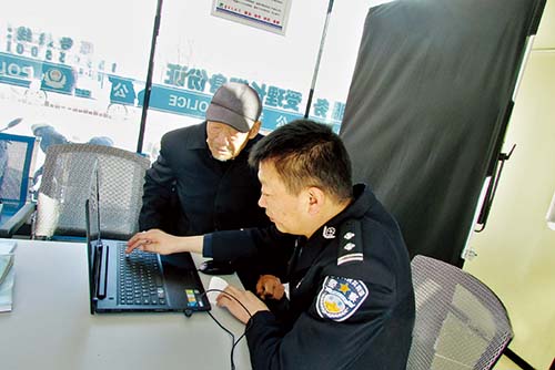 正在警務室輪班的莊磨派出所副所長兼戶籍內勤范樂天聽到此情況后,迅速聯(lián)系所內民警對陳某情況進行核查,同時聯(lián)系老人的外甥女用最方便快捷的方式提供陳某的現(xiàn)實照片,經核查無誤后,當場為陳某補辦了戶口本、受理了身份證,并送老人走出警務室。老人正欲離開時,民警發(fā)現(xiàn)老人的自行車車胎沒氣了。熱心的民警拿出警務室常備的打氣筒給老人的車胎添足了氣。目送老人慢慢離去的身影,民警的臉上露出了欣慰的笑容。(魯明強 劉慧云)