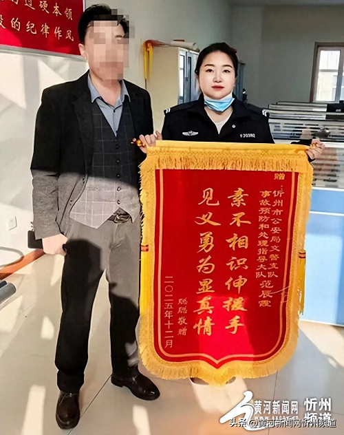 12月22日,獲救市民特意制作了一面寫有“素不相識伸援手,見義勇為顯真情”的錦旗,專程向范辰霞的義舉表示敬意與感謝。