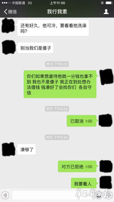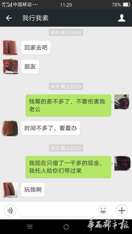 趙婷用微信與丈夫聯(lián)系,回復(fù)的人卻變成了“綁匪”,索要6萬元的贖金,否則撕票。趙婷說,一定會(huì)湊錢,但要保證王江的人生安全,不能虐待,各取所需都不為難人,“綁匪”卻一直逼問著錢的下落,并煞有其事地強(qiáng)調(diào)“不要報(bào)警”。