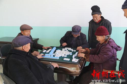 近日,在靜樂縣五家莊老年日間照料中心棋牌室里不時(shí)傳出陣陣歡聲笑語,走近一看,原來是該照料中心的老年人們?cè)谂d致勃勃的打牌,該照料中心的成立,讓老年人們?cè)谶@里老有所托,快樂享老。圖為老人們?cè)谝黄鸫蚺?,和牌后大娘臉上樂開了花。(小敏 攝)