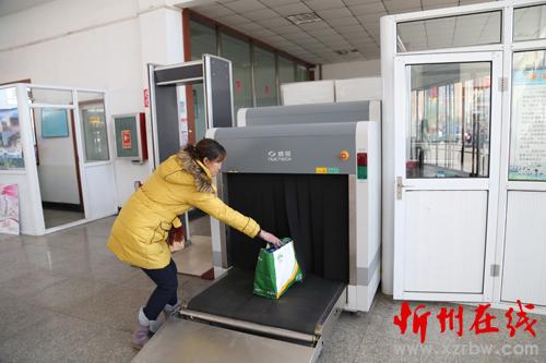 2月4日,靜樂汽車站進站安檢處,汽車站工作人員正在為乘客物品過安檢。2016年春運開始以來,該縣加強安保工作,采取安檢儀檢查,開包檢查可疑包裹,加強對液體飲料及管制刀具的檢查等形式,全面加強安檢工作力度,杜絕易燃、易爆、危險物品進站上車。(閆曉梅 攝)