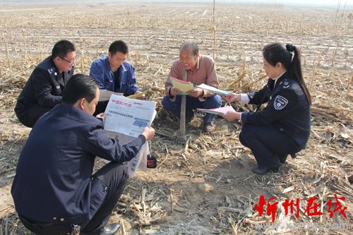 怎樣把《中華人民共和國大氣污染防治法》和《五臺縣人民政府嚴(yán)防森林火災(zāi)的通告》宣傳到人?五臺縣環(huán)境保護(hù)局、環(huán)境監(jiān)察大隊分組劃片,組織環(huán)保人員深入到田間地頭,面對面讀報給農(nóng)民聽,手遞手散傳單讓農(nóng)民看,為農(nóng)民解釋燒秸稈、燒地堰、燒荒等野外違規(guī)用火行為的危害。臺城鎮(zhèn)西關(guān)村66歲的農(nóng)民張存在就高興地對縣環(huán)境監(jiān)察人員說:“你們這樣解釋,咱懂,“地頭環(huán)保”咱農(nóng)民也記得牢,我家4畝地的秸稈保證不燒一根,咱漚糞去,多打糧,又不污染?!眻D為地頭宣傳環(huán)境保護(hù),增強(qiáng)農(nóng)民環(huán)保意識。(金俊賢 攝)