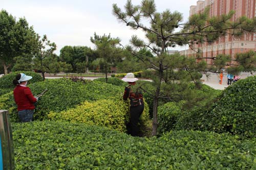 5月24日,幾位來自原平市城郊的留守婦女正在市區(qū)平安大街與京原北路交匯處修剪綠化帶。自原平市開展園林城市建設以來,為留守婦女提供了打工機會,使她們在家門口找到活干,既增加了收入,又美化了城市,一舉兩得。(曹申義 攝)
