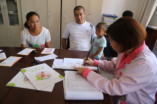 7月26日,來自靜樂縣杜家村鎮(zhèn)李家灣村的趙金國夫婦在該縣計生服務(wù)中心接受了免費(fèi)孕前優(yōu)生健康檢查。近年來,為降低出生缺陷發(fā)生風(fēng)險,提高出生人口素質(zhì),靜樂縣大力宣傳孕前優(yōu)生健康檢查知識、意義、檢查項目等內(nèi)容,積極為農(nóng)村計劃懷孕夫婦開展免費(fèi)孕前優(yōu)生健康檢查,受到群眾好評。圖為計生工作人員正在給趙金國夫婦作登記。(閆曉梅 攝)