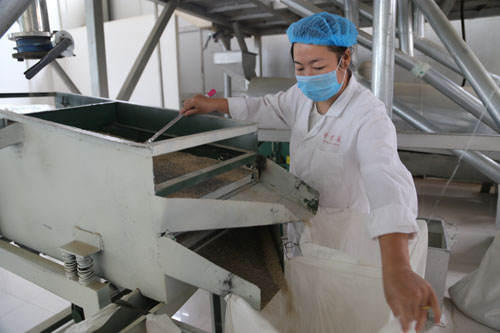 7月22日,靜樂縣華青藜麥產(chǎn)品開發(fā)有限公司的員工在篩選藜麥產(chǎn)品。這個(gè)綜合性農(nóng)業(yè)開發(fā)企業(yè),堅(jiān)持走“企業(yè)管理+種植基地”的運(yùn)作模式,積極推動藜麥、小雜糧等規(guī)模化種植經(jīng)營,成為當(dāng)?shù)貛ьI(lǐng)農(nóng)民致富的龍頭企業(yè)。(閆曉梅 攝)