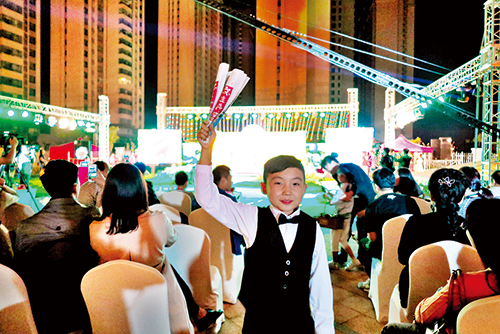 月光皎潔,清輝遍灑,這夜雖是農歷八月十三,月亮卻已迫不及待地圓了起來。花好月圓、春花秋月、花前月下……月宮是神話中的仙境,而此時泛華酒店的后花園里也如仙境一般,琴、詩、書法共同演繹《春江花月夜》,讓現(xiàn)場的500余名觀眾如癡如醉。面容清秀、刺繡大紅旗袍在身的琴師端坐在舞臺的左側,雙手拂動,琴聲綿綿,舒心悅耳;鋪紙、執(zhí)筆、蘸墨、揮毫,舞臺中央的呂峰仿佛置身自家書房之中,墨香中三幅書法作品轉瞬完成;“醉眼看世界,朦朧看人生……李白醉了,醉了!”舞臺右側的朗誦者孫美琴將李白的一生揉碎在他的詩中,就著朦朧的月色,用獨特的聲線摻在她的情感中,沉醉了自己,也迷醉了觀眾。