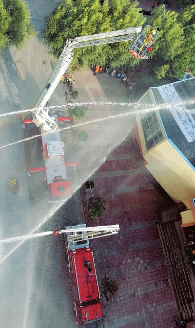 9月26日,在忻州師范學院內(nèi),當?shù)叵啦块T舉行了國慶節(jié)前應急疏散演練,其中包括滅火器材使用、火場逃生自救等演練項目