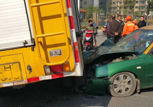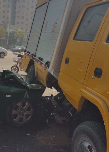 11月3日上午11時(shí)許,在忻州市區(qū)建設(shè)北路與杏林街十字路口發(fā)生兩車相撞事故,事故造成一人負(fù)傷,目前傷者已送往醫(yī)院接受治療。事故現(xiàn)場(chǎng),一輛出租車和一輛黃色的市政工程車相撞,黃色市政工程車的右后輪騎壓在出租車前臉,出租車前臉已被壓扁,黃色市政工程車油箱柴油外溢,事故原因正在調(diào)查中。(郝法林)