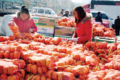 11月11日,原平市農貿市場上紅紅火火,這是市民們正在挑選金黃色柿子。該市合理化布局建市場,使農副產品有了好的銷售平臺,既方便市民購買又促進農民增收