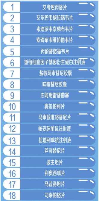 國家醫(yī)保局醫(yī)藥服務(wù)管理司司長熊先軍介紹,此次談判成功的藥品多為近年來新上市且具有較高臨床價(jià)值的藥品,涉及癌癥、罕見病、風(fēng)濕免疫、心腦血管、消化等10余個(gè)臨床治療領(lǐng)域。重點(diǎn)領(lǐng)域的5個(gè)基本藥物全部談判成功,22個(gè)抗癌藥、7個(gè)罕見病用藥、14個(gè)慢性?。ê悄虿?、乙肝、風(fēng)濕性關(guān)節(jié)炎等)用藥、4個(gè)兒童用藥談判成功,進(jìn)一步優(yōu)化了目錄結(jié)構(gòu)。