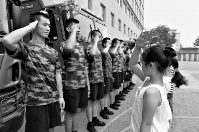 在朝陽(yáng)區(qū)公安消防支隊(duì)左家莊消防中隊(duì),樂樂在“北京少年兒童消防嘉年華”活動(dòng)中,第一次撥打了火警電話。