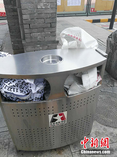 北影表演學(xué)院三試榜單發(fā)布,此前的復(fù)試榜單已被揭下放入垃圾桶。中新網(wǎng)記者 宋宇晟 攝