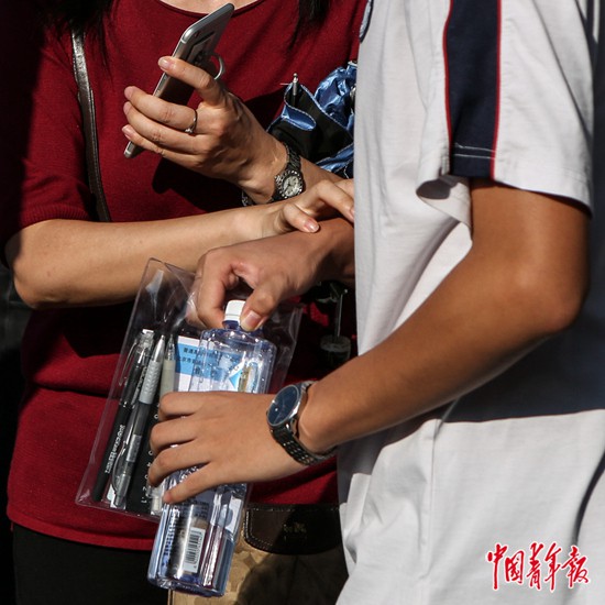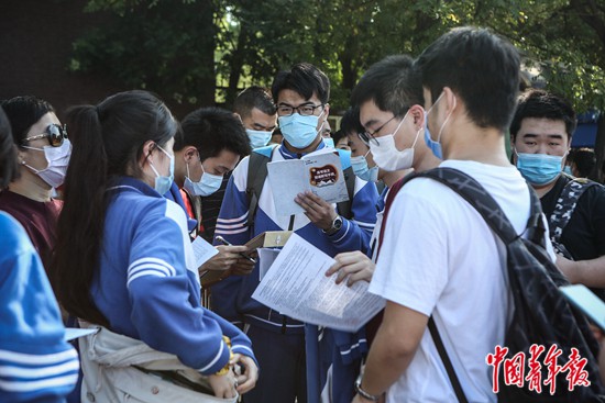 7月7日上午,北京市中國(guó)人民大學(xué)附屬中學(xué)朝陽學(xué)校(東校區(qū))門口,考生們?cè)谶M(jìn)入考場(chǎng)前抓緊時(shí)間看復(fù)習(xí)資料。中青報(bào)·中青網(wǎng)見習(xí)記者 孔斯琪/攝