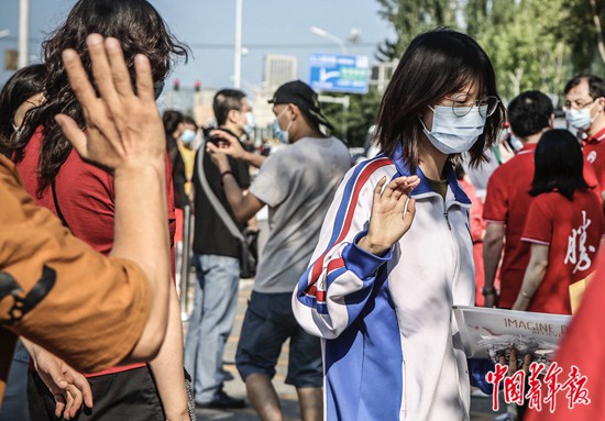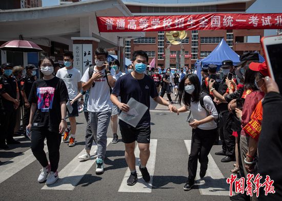 7月7日上午,北京市豐臺(tái)區(qū),北京市第十二中學(xué)考點(diǎn),結(jié)束上午的考試后,高考考生們走出考場(chǎng),一位考生從人群中牽起家人的手。當(dāng)天是2020年全國(guó)統(tǒng)一高考第一天,據(jù)了解,今年北京市高考在7月7日至10日舉行,共49000多名考生,設(shè)17個(gè)考區(qū),132個(gè)考點(diǎn)學(xué)校,2867個(gè)考場(chǎng),每考場(chǎng)考生人數(shù)由過去的30人減至20人。中青報(bào)·中青網(wǎng)記者 李崢苨/攝