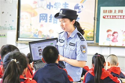 6月13日,江蘇省海安市公安局墩頭派出所民警走進(jìn)轄區(qū)小學(xué),開展未成年人預(yù)防網(wǎng)絡(luò)沉迷和網(wǎng)絡(luò)陷阱的安全教育,引導(dǎo)鄉(xiāng)村兒童樹立正確的上網(wǎng)觀,做到文明健康上網(wǎng),增強(qiáng)網(wǎng)絡(luò)安全意識(shí)。周 強(qiáng)攝(人民視覺)