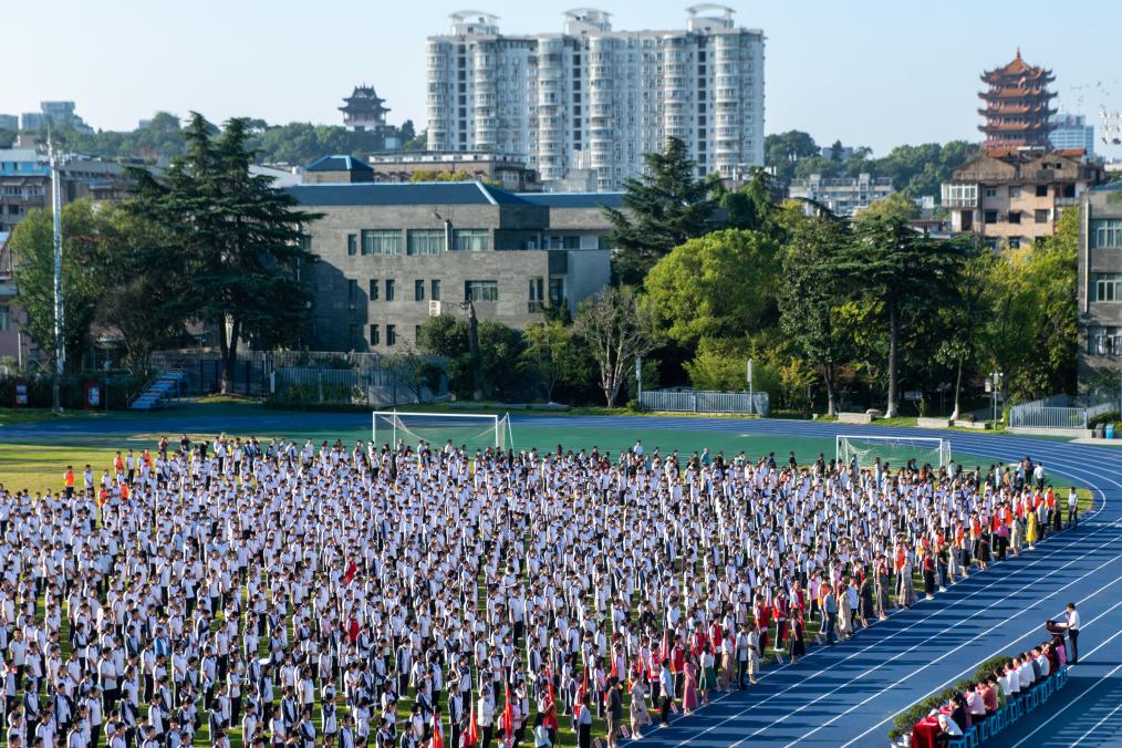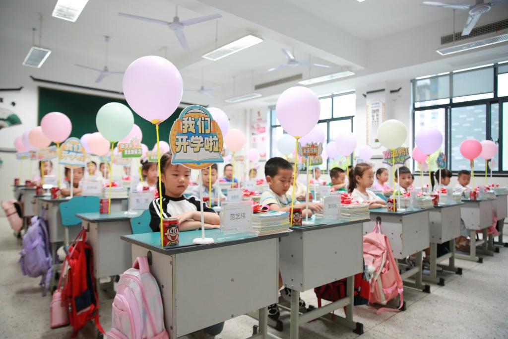 湖北省武昌實(shí)驗(yàn)中學(xué)師生在參加開(kāi)學(xué)典禮。(杜子璇 攝) 校園安全、科技創(chuàng)新、傳統(tǒng)文化等主題,讓新生入學(xué)教育內(nèi)容更豐富。 四川省涼山州,一場(chǎng)主題為“防汛防地災(zāi)暨校園安全”的開(kāi)學(xué)第一課日前在西昌市大箐小學(xué)各班舉行。課堂上,一年級(jí)新生通過(guò)生動(dòng)的方式學(xué)習(xí)避險(xiǎn)自救知識(shí)。學(xué)校教師沙馬比爾說(shuō),學(xué)校地處山區(qū),自然災(zāi)害發(fā)生頻率較高,希望通過(guò)這樣的活動(dòng)提高他們的安全和自我保護(hù)意識(shí)。 在成都七中初中附屬小學(xué),一年級(jí)新生在高年級(jí)學(xué)生志愿者帶領(lǐng)下,游覽學(xué)校人工智能館、航天館等,打卡完成各場(chǎng)館闖關(guān)任務(wù)。學(xué)校學(xué)生家長(zhǎng)發(fā)展中心副主任楊欣竹說(shuō),其中的科創(chuàng)體驗(yàn)有助于開(kāi)啟孩子們?cè)趯W(xué)校創(chuàng)新創(chuàng)造的大門(mén)。此外,學(xué)校還設(shè)計(jì)了“詩(shī)詞天宮”體驗(yàn)活動(dòng),新生在老生帶領(lǐng)下朗讀古代詩(shī)詞名篇,親近、體驗(yàn)中華優(yōu)秀傳統(tǒng)文化。