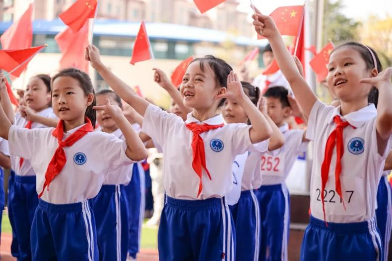 2023年10月12日,在山東省青島市城陽區(qū)第二實驗小學(xué),學(xué)生們在秋季運動會開幕式上進行才藝展演。通訊員 張鷹 攝 背景:黨的二十大報告指出,“加快建設(shè)教育強國、科技強國、人才強國,堅持為黨育人、為國育才,全面提高人才自主培養(yǎng)質(zhì)量,著力造就拔尖創(chuàng)新人才,聚天下英才而用之”。中共中央政治局2023年5月29日下午就建設(shè)教育強國進行第五次集體學(xué)習(xí)。中共中央總書記習(xí)近平在主持學(xué)習(xí)時強調(diào),教育興則國家興,教育強則國家強。建設(shè)教育強國,是全面建成社會主義現(xiàn)代化強國的戰(zhàn)略先導(dǎo),是實現(xiàn)高水平科技自立自強的重要支撐,是促進全體人民共同富裕的有效途徑,是以中國式現(xiàn)代化全面推進中華民族偉大復(fù)興的基礎(chǔ)工程。 解讀:強國必先強教,教育強則國強。建設(shè)教育強國是黨中央、國務(wù)院的重大戰(zhàn)略部署,是國家意志和國家行動。建設(shè)教育強國是一項系統(tǒng)工程,要堅持立足長遠、標準引領(lǐng)、分步實施、整體推進的工作思路,系統(tǒng)設(shè)計、系統(tǒng)實施、系統(tǒng)評價和系統(tǒng)提升。要進一步科學(xué)認識和把握深層次教育改革的綜合性、復(fù)雜性、深刻性和系統(tǒng)性,充分發(fā)揮社會主義制度優(yōu)勢,鞏固規(guī)模優(yōu)勢,提升質(zhì)量優(yōu)勢,努力在增強教育綜合實力、國際競爭力和影響力上下功夫,持續(xù)縮小教育的城鄉(xiāng)、區(qū)域、校際、群體差距,在實現(xiàn)城鄉(xiāng)教育優(yōu)質(zhì)均衡發(fā)展、加快建設(shè)世界重要人才中心和創(chuàng)新高地方面取得實質(zhì)性突破。 基點在基礎(chǔ)教育 擦亮人才成長發(fā)展底色, 筑牢教育強國堅實底盤