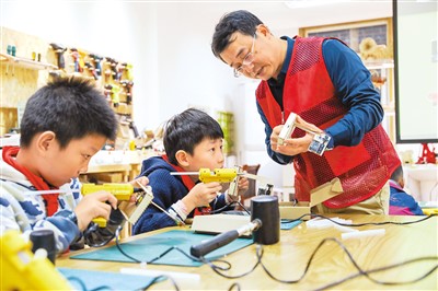 從無(wú)到有建造科普“車(chē)間”并非易事。為了滿(mǎn)足需求,陳少華自掏腰包,花了10多萬(wàn)元購(gòu)置3D打印機(jī)、機(jī)器人教學(xué)套件、兒童木工機(jī)床等設(shè)施。自己研發(fā)科普課程、親手制作教學(xué)套件……在本職工作之外,陳少華幾乎把所有的業(yè)余時(shí)間都花在了“21世紀(jì)車(chē)間”上。