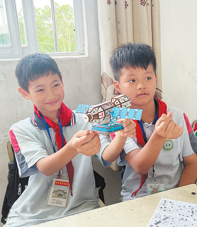 廣西壯族自治區(qū)貴港市平南縣廖村小學(xué)的學(xué)生在展示科普活動作品。廣西科技館供圖 河南固始縣鄉(xiāng)村科學(xué)課教師張建濤—— 在大別山北麓撒下科學(xué)的種子 人民日報記者 張文豪 “丁零零……”課堂鈴聲響起,河南省信陽市固始縣張廣廟鎮(zhèn)第一小學(xué)四年級二班的學(xué)生興奮起來。坐在后排的學(xué)生伸著腦袋,想看一下張老師又帶來了哪些新“道具”。 固始縣地處大別山北麓。85后張建濤是這所鄉(xiāng)村小學(xué)的科學(xué)課教師,也是孩子們眼中的“魔法師”。 課堂上,張建濤走到教室中間,從口袋中拿出一架紙飛機(jī)。隨手一甩,紙飛機(jī)在孩子們頭頂滑出優(yōu)美弧線,又準(zhǔn)確飛回他的手中?!巴?!”學(xué)生們瞪大眼睛發(fā)出驚嘆,課堂一下子熱鬧起來。 這只是暖場環(huán)節(jié)。只見張建濤擲出紙飛機(jī),斜端著一個紙板、托著紙飛機(jī)一路小跑。紙飛機(jī)很“聽話”,穩(wěn)穩(wěn)地懸浮在紙板上。面對學(xué)生們的驚訝,張建濤順勢講解氣流的知識,并結(jié)合紙飛機(jī)講升力。學(xué)生們聽得津津有味。 這些小實驗背后是空氣動力學(xué)、斜坡氣流原理?!耙粡埣埰?、一個紙板,都可以成為科學(xué)課的教具?!睆埥f,“把深奧的科學(xué)知識,融入好玩的小實驗中,就會讓課堂兼具信息量與吸引力?!?/p> 做好科學(xué)課教師,并不容易。張建濤教齡不長,更非科班出身。為讓科學(xué)課堂變得豐富有趣,張建濤自學(xué)理論知識,借助網(wǎng)絡(luò)學(xué)習(xí)制作教具。通過一步步摸索,張建濤不斷優(yōu)化教學(xué)方式。“水火箭”“空氣炮”“無人機(jī)”……越來越多的科學(xué)實驗被他搬到課堂上,教學(xué)場所也不再局限于教室。 “為什么風(fēng)輪會轉(zhuǎn)動?”“為什么紙飛機(jī)可以轉(zhuǎn)彎?”“為什么‘水火箭’可以飛這么高?”……隨著實驗課的深入,學(xué)生不斷提出心中的疑惑,張建濤則在回答學(xué)生一個又一個的“為什么”中,傳遞科學(xué)知識。 這幾年,張建濤也會通過“走教”“送教”等方式,和周邊鄉(xiāng)鎮(zhèn)學(xué)校師生交流,推動科學(xué)課普及。他發(fā)現(xiàn),喜歡科學(xué)課的學(xué)生越來越多,科學(xué)課教師隊伍也在逐漸擴(kuò)大。 “近年來,我們著力做好科學(xué)教育‘加法’,大力培育科學(xué)課教學(xué)隊伍?!惫淌伎h教育體育局副局長洪念國介紹,目前,全縣有科學(xué)學(xué)科專職教師66人,配備青少年科技輔導(dǎo)員217名、兼職教師286名,累計投入約1670萬元,為100多所學(xué)校提供實驗器材,完善實驗室建設(shè)。 張廣廟鎮(zhèn)第一小學(xué)科學(xué)實驗室內(nèi),擺放著各種瓶瓶罐罐,這都是師生們一起制作的實驗器材?!拔蚁氤蔀橐幻茖W(xué)家”“我要成為一名宇航員”……孩子們用稚嫩的筆觸寫下寄語,用透明膠帶粘在飲料瓶上。這些瓶子將被制成“水火箭”,承載著孩子們的夢想,飛向廣闊的天空。一粒??茖W(xué)種子,正在大別山北麓生根發(fā)芽。 張建濤給科學(xué)實驗室取名“雛鷹”。“希望有朝一日,孩子們會像鷹一樣,帶著夢想,在藍(lán)天中自由翱翔?!睆埥f。 廣西開展科普大篷車活動—— 一場家門口的航天科普 人民日報記者 祝佳祺 “這是航天衛(wèi)星的兩翼,是安裝太陽能電池板的地方?!眮碜詮V西壯族自治區(qū)梧州市藤縣第五小學(xué)的三年級學(xué)生李杰峰驕傲地展示著親手組裝的模型,他希望將來能從事航天工作。 這是一場由中國科技館指導(dǎo),廣西科協(xié)主辦,廣西科技館、廣西科協(xié)團(tuán)委、梧州市科協(xié)承辦,藤縣科協(xié)協(xié)辦的“小村莊的太空夢”科普大篷車系列活動。在藤縣中和陶瓷交易中心展館教室內(nèi),當(dāng)?shù)貙W(xué)生正在科技輔導(dǎo)員指導(dǎo)下組裝航天模型。 除此之外,流動科技館科普展教、航天科普講座、3D科學(xué)家精神電影展播等科普大篷車系列活動,也吸引了不少師生前來參加。 “異形齒輪”“視錯覺鐘”“魔鏡”“磁阻尼”……數(shù)十項科普展教模塊前,孩子們按照提示操作,親身體驗科學(xué)的奇妙,再通過閱讀模塊展板上通俗易懂的說明,獲取科學(xué)知識。 “戴上眼鏡看電影,就像自己在翱翔,感覺很神奇?!庇^看3D電影給藤縣第五小學(xué)的陳亦然留下了深刻印象。 “3D電影不算新技術(shù),但鄉(xiāng)村的很多孩子都沒接觸過。于是,我們研發(fā)了可攜帶的3D電影放映設(shè)備,把3D電影送下鄉(xiāng),受到了廣泛歡迎?!睆V西科技館展品資源管理部主管王書林說。 2020年,中國科技館聯(lián)合廣西、云南等地發(fā)起“小村莊的太空夢”科普大篷車活動。近4年間,“小村莊的太空夢”活動已走進(jìn)百色、桂林、河池、梧州、貴港、南寧等地。 藤縣的活動結(jié)束后,科普團(tuán)隊一路向西來到了貴港市平南縣。“冥王星太小了,已經(jīng)退出了太陽系的‘行星圈’?!逼侥峡h鎮(zhèn)隆鎮(zhèn)廖村小學(xué)的教室內(nèi),中國航天科普大使、中國科學(xué)院國家空間科學(xué)中心研究員劉勇正繪聲繪色地講解天文知識。臺下,小學(xué)生們坐得筆直,聚精會神地聽著。 “劉老師講的內(nèi)容有趣易懂,讓我收獲很大。”廖村小學(xué)四年級學(xué)生楊文華說,“我們平時很難有機(jī)會接觸這么專業(yè)的老師?!?/p> “鄉(x