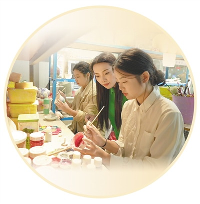 江西吉安職業(yè)技術學院老師(中)為吉州窯非遺創(chuàng)業(yè)班學員授課。范小勇 劉 晨攝影報道