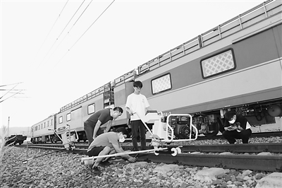 重慶電子工程職業(yè)學院師生正在使用軌枕螺栓高精度智能檢測與檢修設備進行現(xiàn)場勘測。受訪者供圖