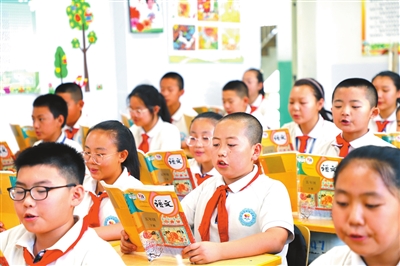 敦煌市東街小學學生在課堂上誦讀《涼州詞》。中國教育報記者 尹曉軍 攝