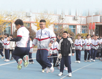 沈陽七中課間的跳繩活動。