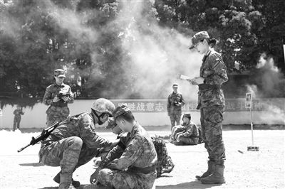 海軍軍醫(yī)大學(xué)推動黨的創(chuàng)新理論“三進(jìn)入”融入實(shí)戰(zhàn)化戰(zhàn)救科目訓(xùn)練。李超攝