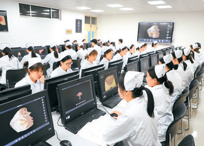 醫(yī)學(xué)技術(shù)與護理系學(xué)生運用人體解剖虛擬仿真資源進行自主學(xué)習(xí)。