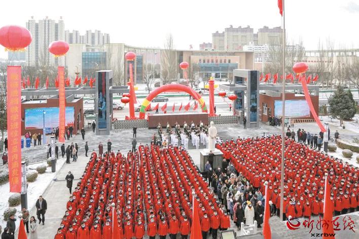 本報(bào)訊 近日,雪后的范亭中學(xué)彩門高懸,紅旗飄揚(yáng),軍樂(lè)高奏,鑼鼓喧天,校園提質(zhì)改造一期工程竣工典禮儀式在學(xué)校將軍廣場(chǎng)隆重舉行。