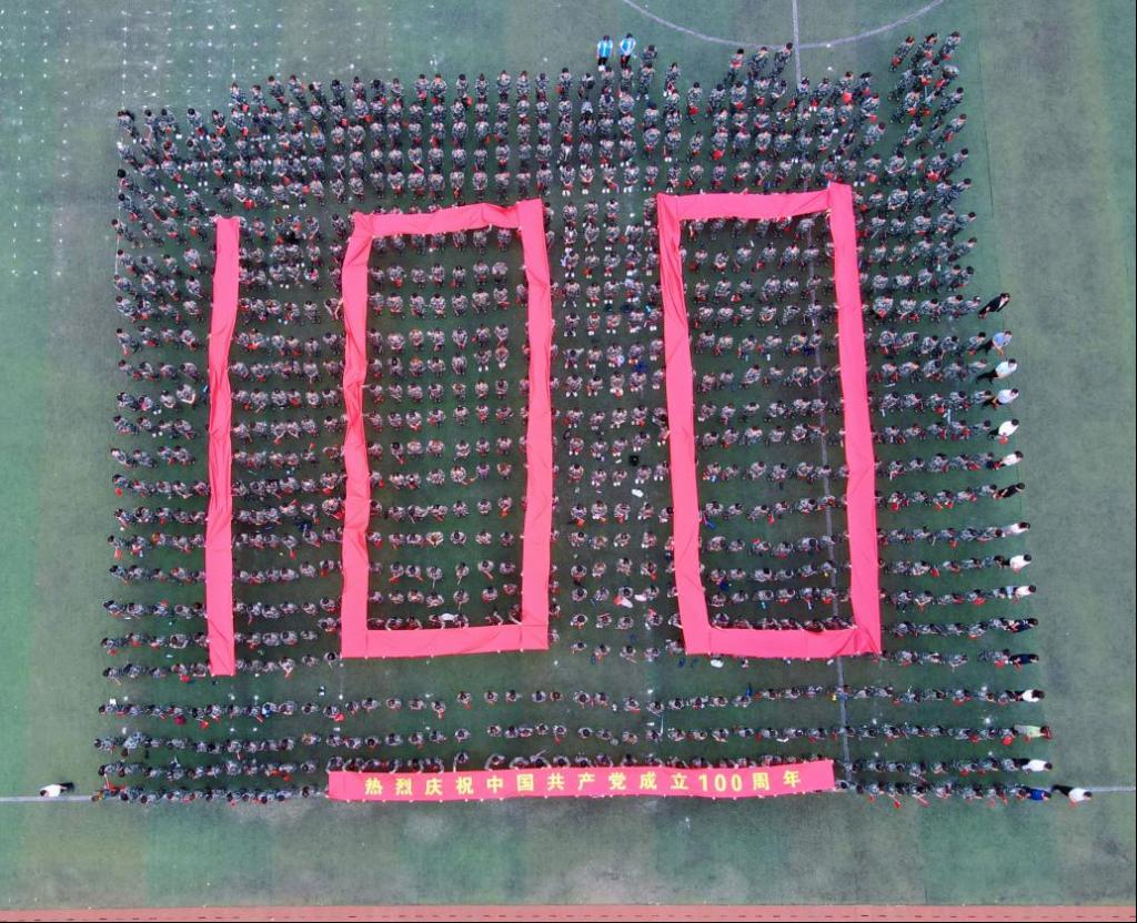 操場(chǎng)中央,由1000名2020級(jí)學(xué)生組成方隊(duì),呈現(xiàn)“100”字型,向黨致敬?;顒?dòng)全程莊嚴(yán)肅穆,又不失青春的朝氣蓬勃和奮進(jìn)的斗志昂揚(yáng),顯現(xiàn)出師生對(duì)中國共產(chǎn)黨百年華誕的崇敬與祝福。