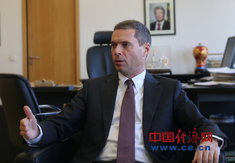 近日,德國駐華大使柯慕賢在他的辦公室接受中國經濟網記者專訪。1961年出生于德國漢諾威的柯慕賢,曾任該國外交部歐洲司司長。中國經濟網記者 劉若星 攝影