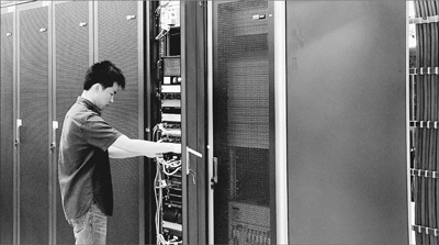 在東南亞電信(柬埔寨)有限公司建設的云數(shù)據(jù)中心里,工作人員正在調試設備。本報記者 張志文攝