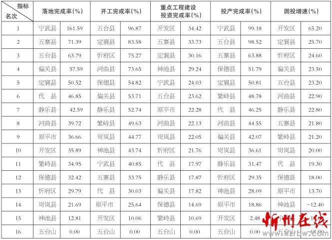 忻州1-5月各縣(市、區(qū))重點工程完成率和固定資產(chǎn)增速排名表