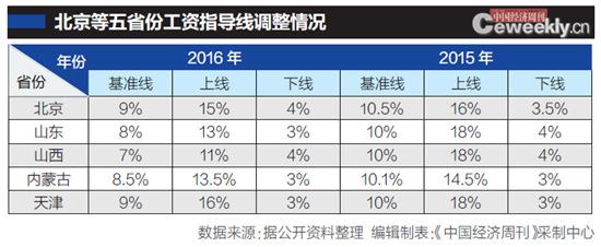 企業(yè)工資指導(dǎo)線(下稱“工資指導(dǎo)線”)從1997年出臺(tái),至今已20年。按照慣例,各省份在每年上半年就會(huì)發(fā)布。不過(guò),截至7月20日,《中國(guó)經(jīng)濟(jì)周刊》記者發(fā)現(xiàn),僅有天津、北京、山東、山西、內(nèi)蒙古等五省份發(fā)布了2016年工資指導(dǎo)線,并且多是下調(diào)基準(zhǔn)線。