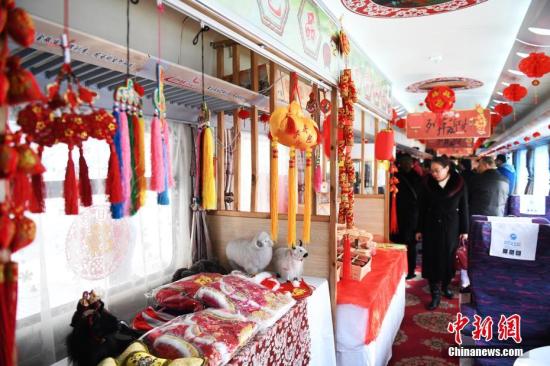 1月13日,春運首日,蘭州鐵路局蘭州客運段擔當?shù)腪6207次列車上設立“年貨超市”吸引旅客。中新社記者 楊艷敏 攝