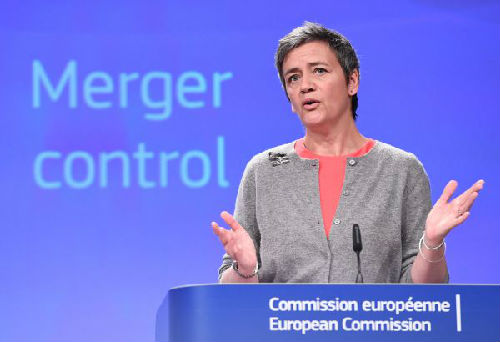 4月5日,歐洲反壟斷監(jiān)管負(fù)責(zé)人瑪格麗特·維斯特格宣布中國化工收購先正達(dá)通過反壟斷審批。(法新社)