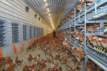 偏關縣坐落于我省西北部冷涼山區(qū),空氣清新、水源干凈、土壤優(yōu)質(zhì),這實打?qū)嵉摹吧鷳B(tài)家底”為優(yōu)質(zhì)蛋品孕育提供了天然溫床,永奧生態(tài)農(nóng)業(yè)于2019年應時落戶偏關縣窯頭鄉(xiāng)張家山村,建起高標準規(guī)?;腔\養(yǎng)蛋雞養(yǎng)殖基地——70畝蛋雞農(nóng)場里,20萬只蛋雞正享受著立體棲架式散養(yǎng)系統(tǒng)帶來的“自由生活”。養(yǎng)殖基地內(nèi)采食、飲水、糞便處理全流程自動化,環(huán)境控制系統(tǒng)精準調(diào)控溫濕度,蛋雞享有寬敞的活動空間,可自由覓食、沙浴,飼料則以當?shù)厥a(chǎn)的雜糧副產(chǎn)品為主?!半u群心情好,產(chǎn)的蛋自然優(yōu)質(zhì)?!惫究偨?jīng)理劉開永笑著說。