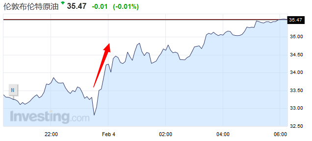 美國(guó)原油期貨結(jié)算價(jià)報(bào)每桶32.28美元,大漲2.40美元,或8%。布蘭特原油期貨結(jié)算價(jià)報(bào)每桶35.04美元,勁升2.32美元,或7.1%,盤(pán)中高見(jiàn)35.11美元。