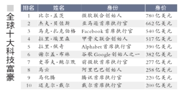 京華時報訊(記者胡笑紅)福布斯10日發(fā)布了第二屆科技行業(yè)百富榜顯示,全球排名前100的科技富豪合并財富達到8920億美元,較去年增長6%。中國的馬云、馬化騰躋身榜單前十。