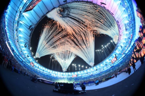 (圖為里約奧運會開幕式上的焰火表演。新華社圖片)